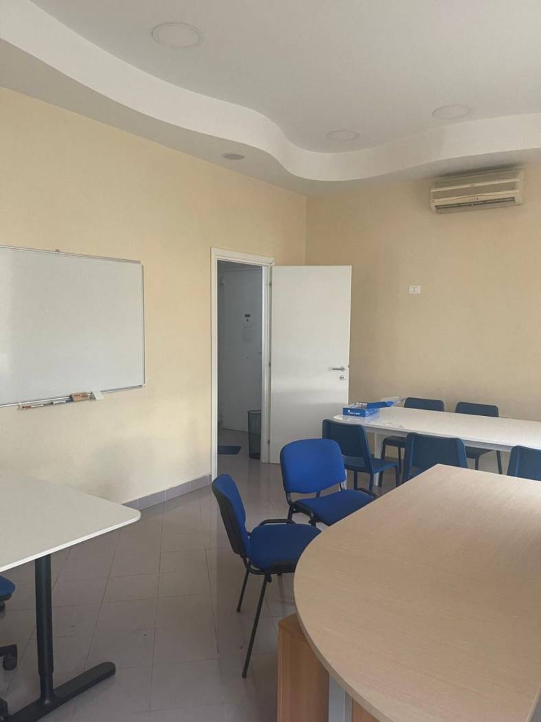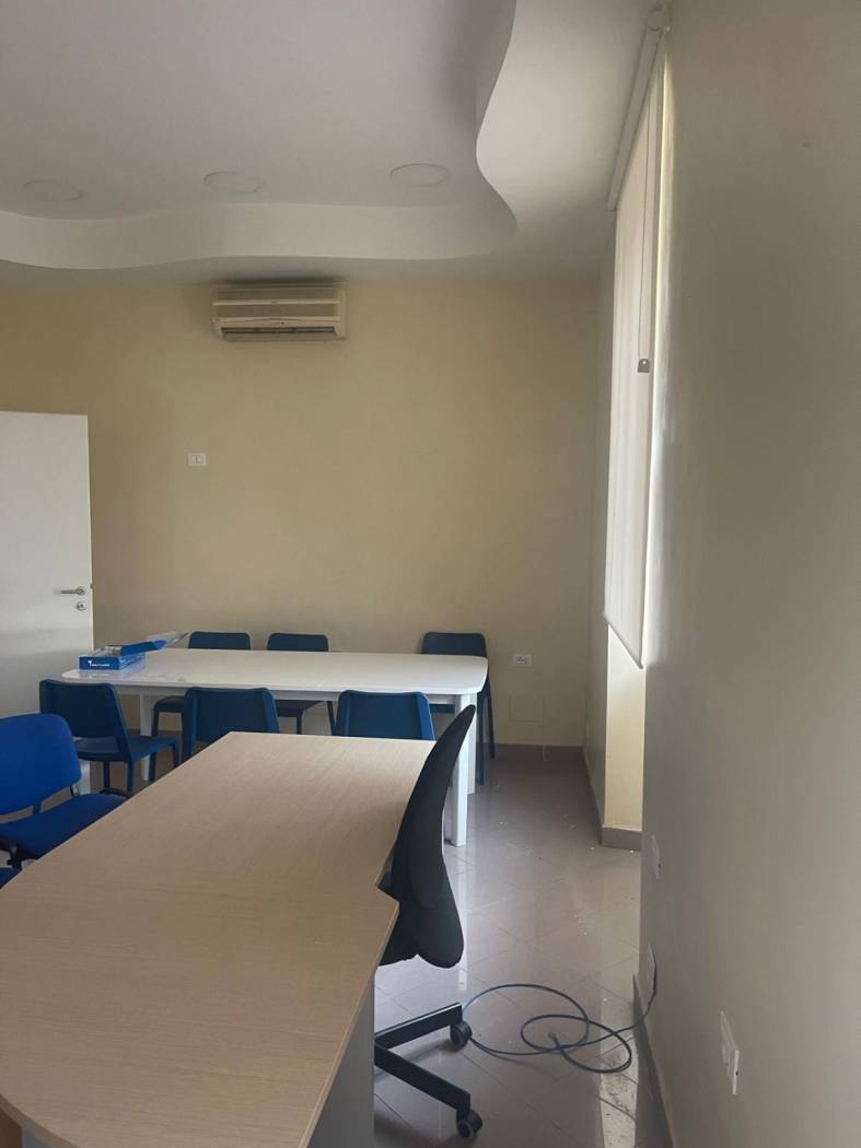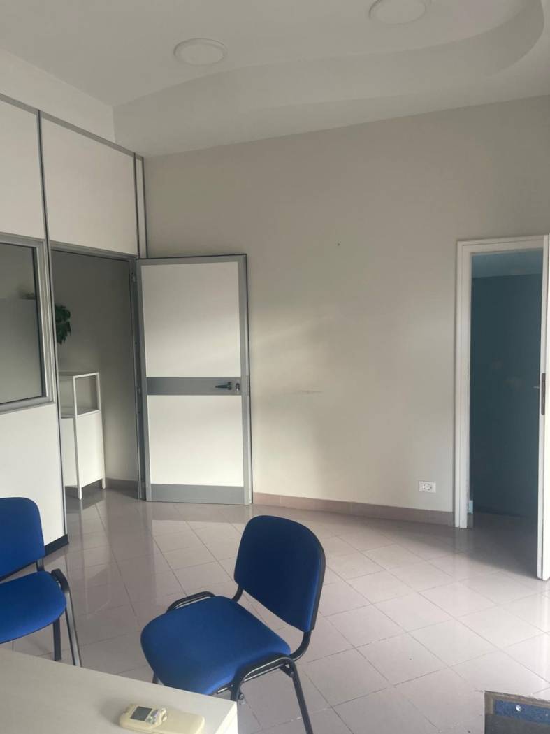 affittasi locale in ottime condizioni zona di scorrimento vicino alla piazza principale, in un'arteria principale confinante con studio medico, ottimo per ufficio di rappresentanza può essere diviso comodamente oppure diventare unico locale. ha come appendici un grande piazzale privato con entrata indipendente con parcheggio per 4 auto doppio ingresso vetrina unica, inoltre dipsone di un piano interrato con bagno . bellissimo.